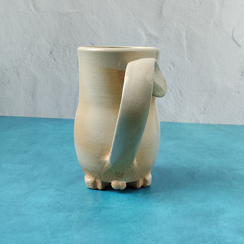 Faced & Fabulous Cat Butt Mug - White & Ginger Soda Fired (Trouble Puffs)