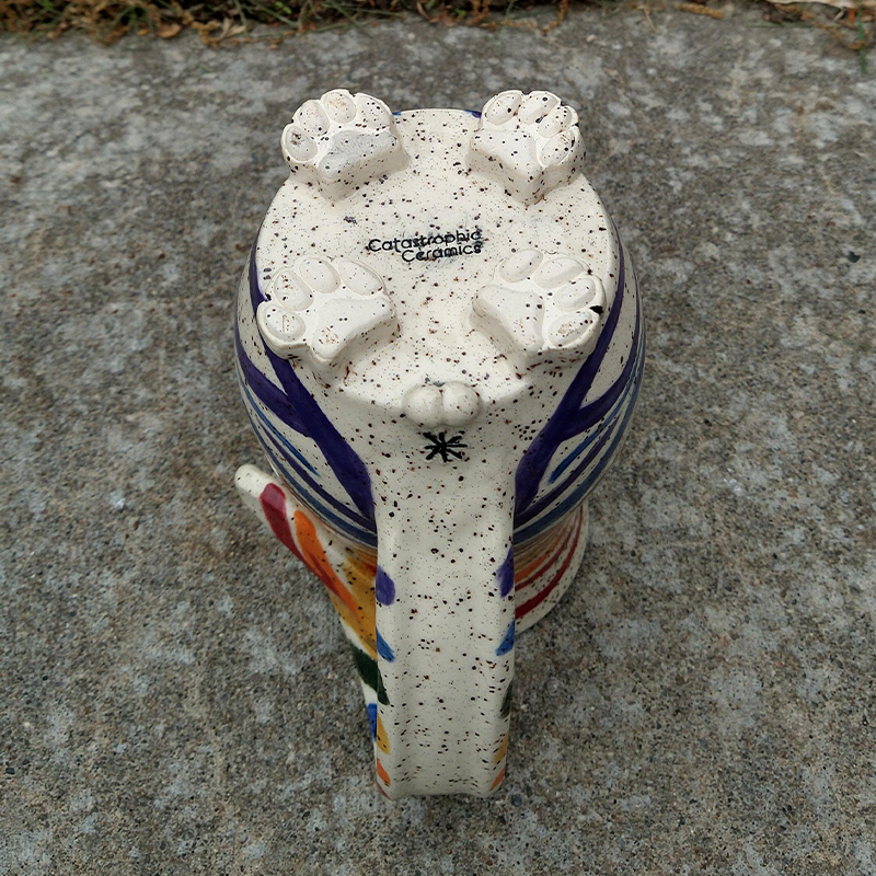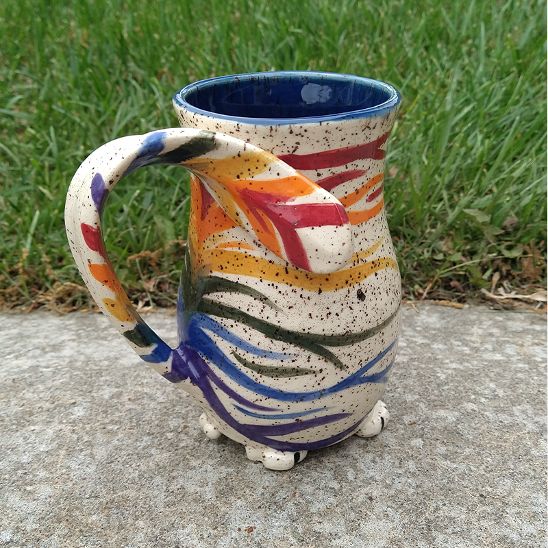 He’s a sturdy boy, standing nearly 6" tall and holding about 20 ounces of whatever gets you through the day. The inside is glazed in a deep, moody blue—because even the most colorful cat has a dramatic side.